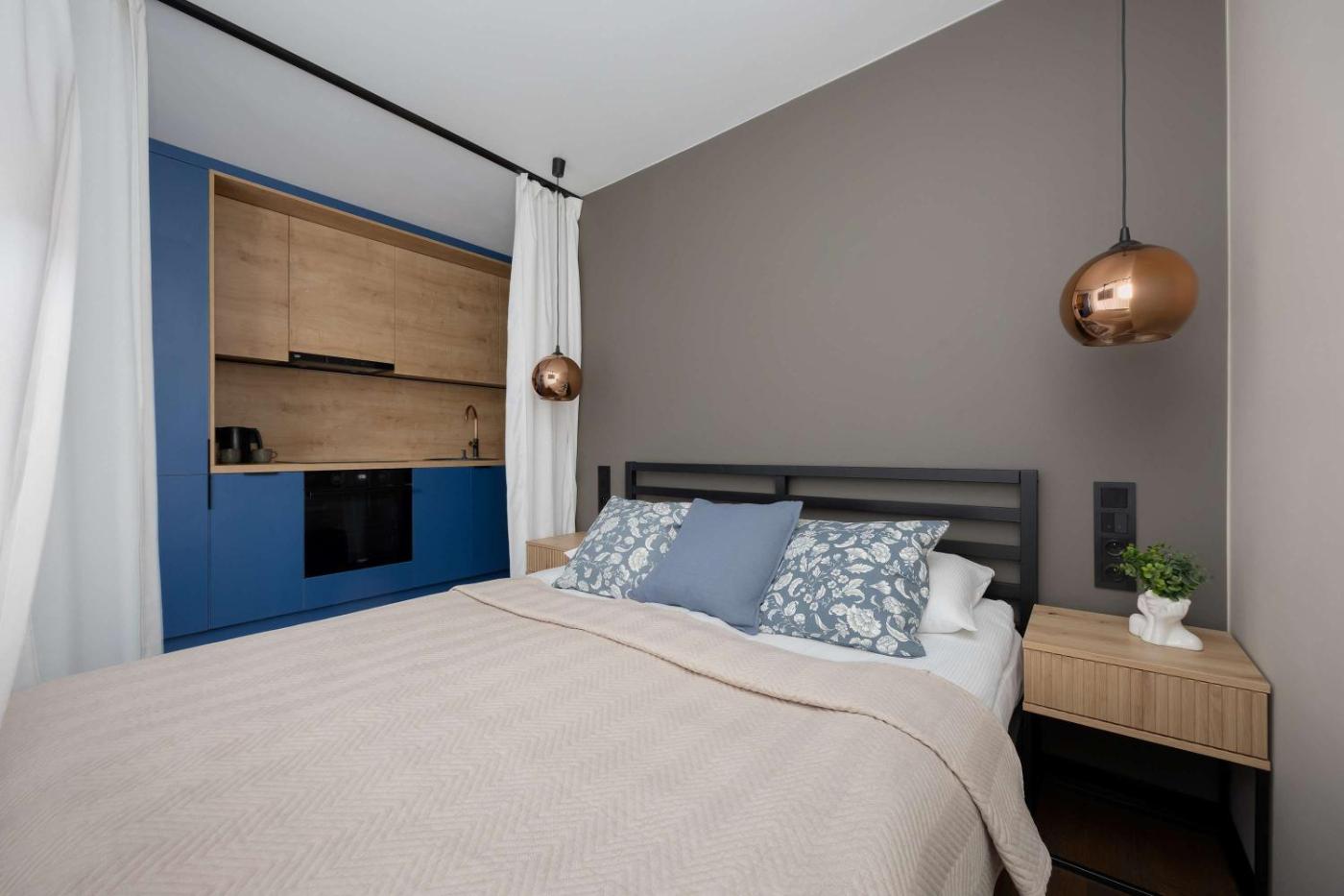 Studio. Offering free toiletries, this studio includes a private bathroom with a shower and a hairdryer. In the well-equipped kitchenette, guests will find a stovetop, a refrigerator, a dishwasher and kitchenware. The air-conditioned studio offers a flat-screen TV with streaming services, a washing machine, a private entrance, a tea and coffee maker as well as city views. The unit has 2 beds. Studio - 5 osobowy. Powierzchnia pokoju ok.: 30 mkw.